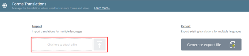 Once you have updated your custom translations in the export file, you can import those changes into the system. Note when you import the changes, any existing translations are overwritten.