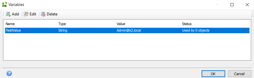- On the Edit Variable dialog, specify a Name, Description and Value for the variable. If you don't know what the value of a variable will be on the target environment, leave it blank as you can set the value during deployment.
