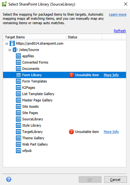 - When mapping a Library, only libraries are listed. The same applies to a List