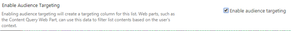 In this example, in the SharePoint source environment, you select to enable audience targeting to create a targeting column for your list.