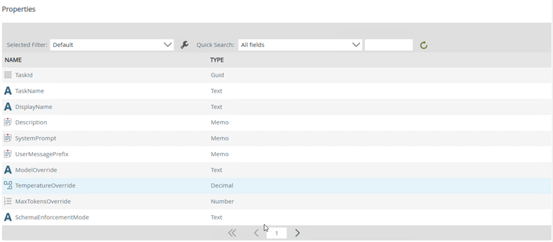 | EnumAllowedValues | Use this to restrict the AI model to a predefined set of options instead of allowing free form responses. For example, in sentiment analysis, you can specify “positive, negative, neutral,” which limits the model to selecting one of these comma separated values |