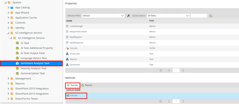- Select Sentiment Analysis Task, then select the Execute method, and click Execute.
