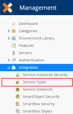 Expand the Integration category, then click Service Types.Service Types, Brokers, Instances, and SmartObjects