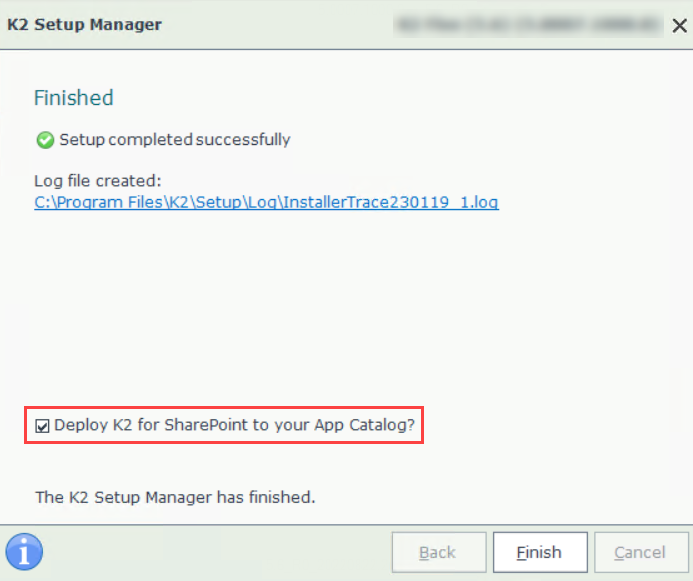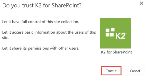 1. From your site collection home page, navigate to the Site Contents page and confirm you see the Nintex K2 app icon. If you see the icon, the app is deployed to the site collection. You still need to confirm the app is active for the site collection, however.