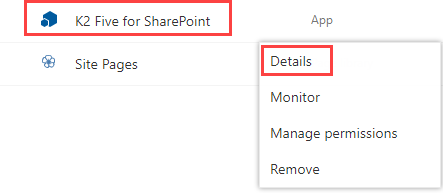 2. Confirm the Nintex K2 app deployment and activation. Begin by checking your site to see if the K2 for SharePoint app is already deployed and activated for the site collection you are working in. Navigate to the Site Contents page and look for the Nintex K2 app icon under the Contents heading. If you see the Nintex K2 app icon, the app is deployed at the site level and you can skip to Step 3, creating a test list. If the Nintex K2 icon is not there, the app is not deployed to the site collection. You must deploy it first to continue. See Adding the K2 for SharePoint app for instructions.