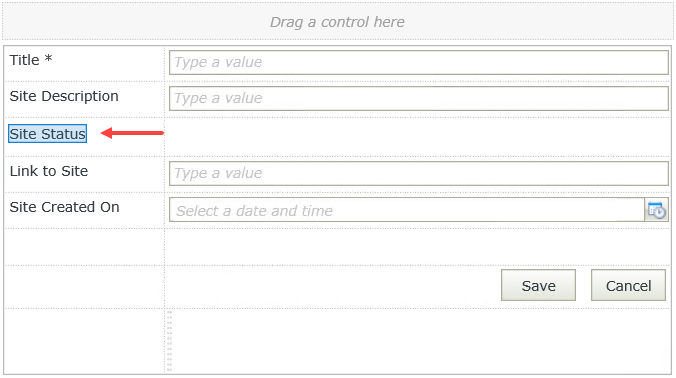 - Select the Site Status text box. (The text box is also known as a control.) Click your keyboard <DELETE> key to remove the control.