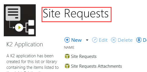 You are returned to the K2 Application elements page. Right-click the New Site Requests view, then select Check In to publish the changes to the server.