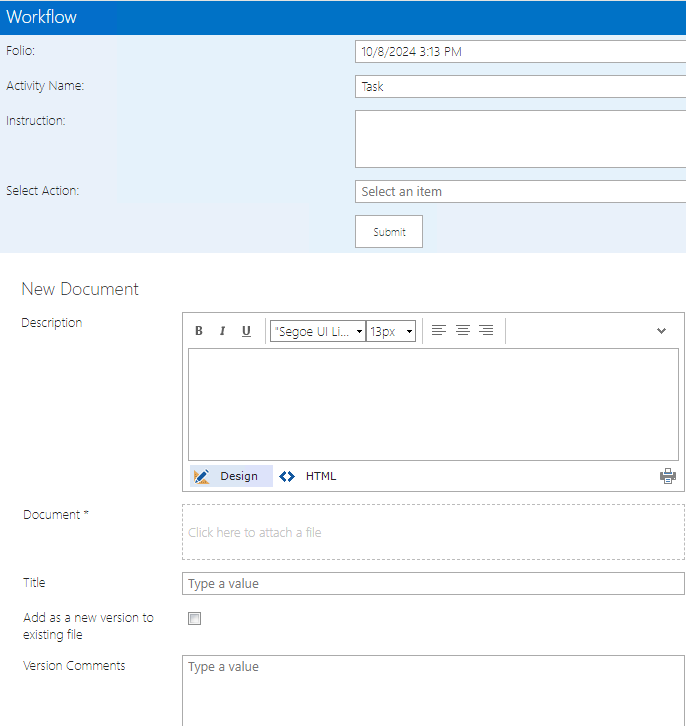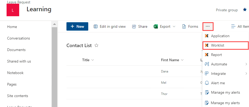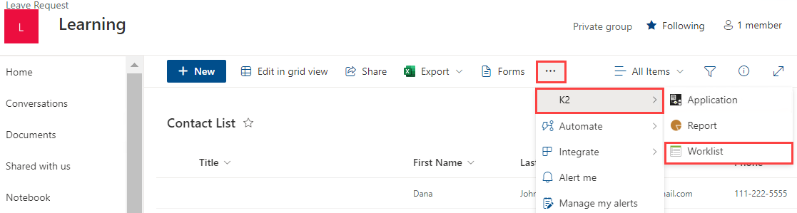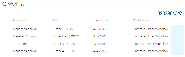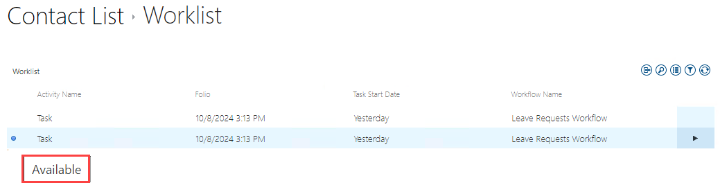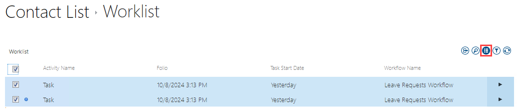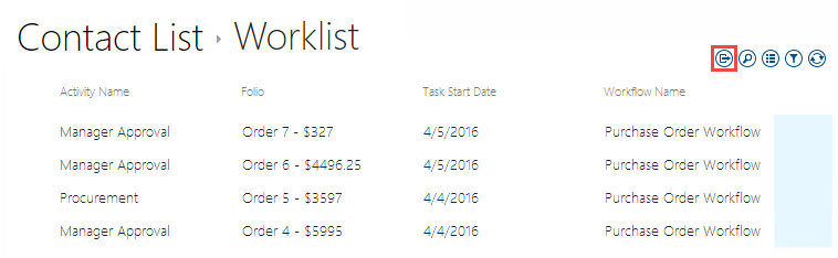 • from the Portal page, which displays your Worklist after you add a Worklist Web Part (legacy Silverlight Designer).