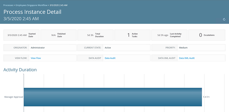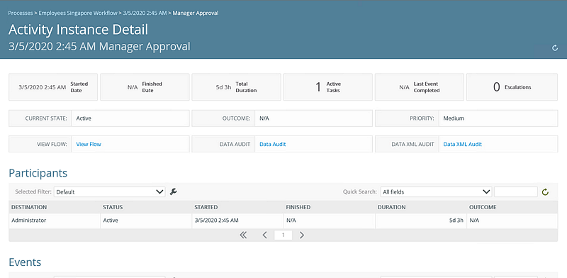 The Worklist displays a list of the work items (tasks) currently assigned to you. You can view and action tasks, open the View Flow report for tasks, filter and search your tasks, and configure your Out of Office settings.