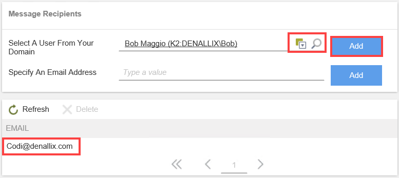 - To remove a recipient from the list, select them and click Delete.