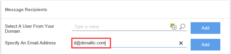 You cannot add a group of users, such as Finance or Human Resources, to the list. To add multiple users, select and add them individually. - You can also use the Specify An Email Address field to type an address. You can use this feature to send app invites distribution groups in your organization.