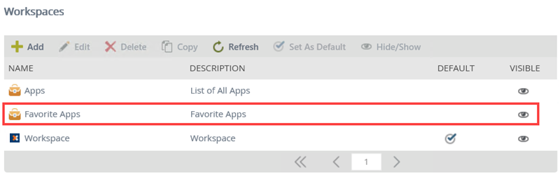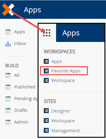 - From the Apps workspace click the logo and select Favorite Apps workspace.