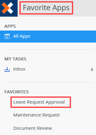 You can add apps to the Favorites section for quick access. The Favorites section appears on the Favorite Apps workspace. By default, the Favorite Apps workspace is hidden which means you have to make it visible to see the apps you've marked as favorites in this workspace. Note that the Favorite Apps workspace is a separate workspace from the Apps workspace, but you can easily toggle between the two by clicking the logo and select the one you want.