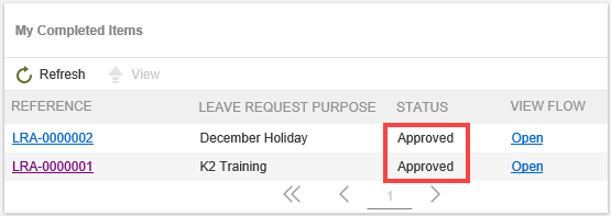 The person who created the app can see the status of their request by opening the application, then reviewing the My Completed Items list.