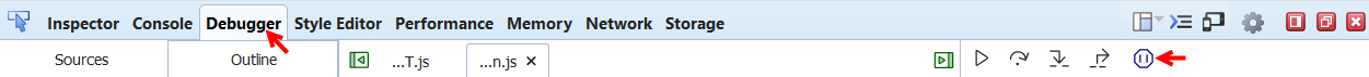 1. If you use Firefox's developer tools you need to pause on uncaught exceptions. To turn this on click Debugger and then click the pause button as shown below.