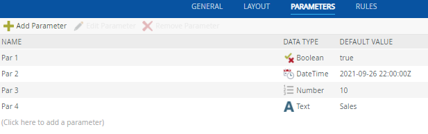 | Default Value | The default value used when you run the form with parameters. Validation is performed on the input values according to the data type you use, for example if you use Number as mentioned above, you cannot enter text in runtime | Type a value if a default value should be used (optional) |
