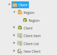 Once you have added items to a folder or subfolder, the items display in the category tree. You can use the icons to identify the type of item created: