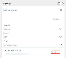 | Add | Opens the Select a user to add to the Out of Office list search page. Search for a person to add to the list and display the current out of office setting. |