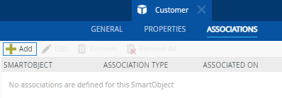 Associations allow you to define how two SmartObjects are related. You can configure associations between two SmartObjects and between workflows and SmartObjects. You can use associations to create drop-down menus, lookup controls, show properties of the associated SmartObject in list views, and use the associated SmartObject properties from the context browser in control values, expressions, rules, and more.