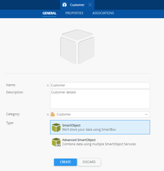 Use the General tab to specify the SmartObject name, description, location in the category tree, type of SmartObject, and if you want to use this SmartObject in workflows.