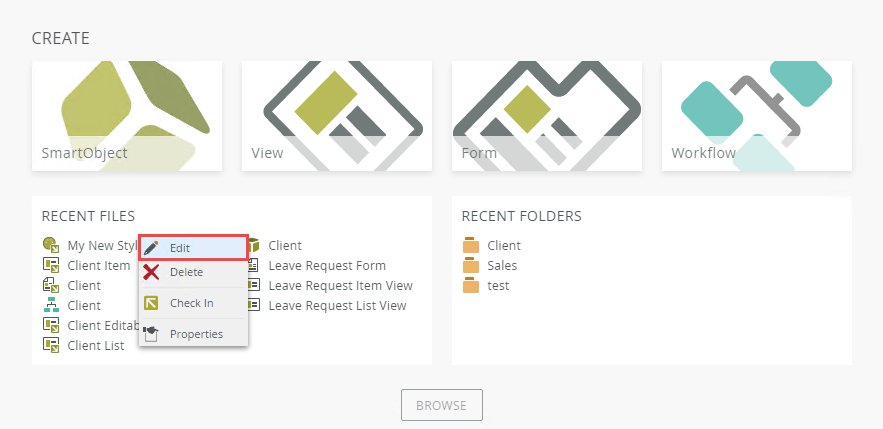 - Right-click the style profile under Recent Files and select Edit.