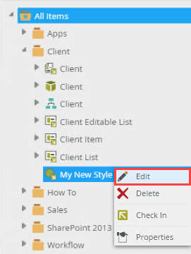 - Right-click the style profile in the category tree and select Edit.