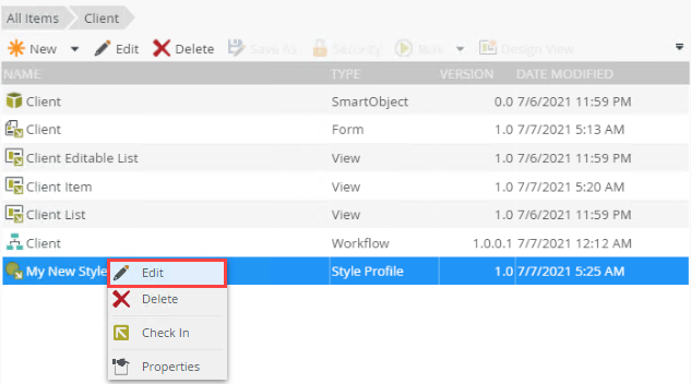 - You can also select the style profile in the category grid and then right-click it to Edit.
