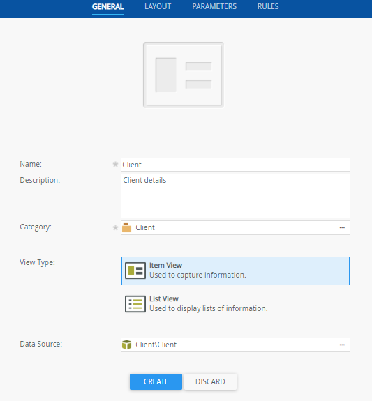 | Description | The description of what the view is used for, for example to create new client records | Type a brief description of the view |