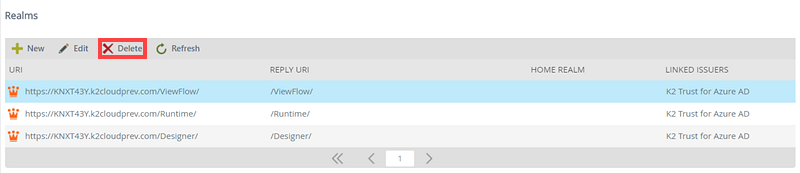 The Refresh button allows the refreshing of the realms list after changes have been applied and provides an updated list of the realms view.