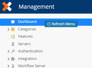The Dashboard is the home page for Management and provides links to quickly access some of the most common administration tasks. On the left, you will find a tree view to navigate between various nodes, which allow you to perform administration tasks based on the item selected int he tree. You can expand the nodes and navigate through the tree view to locate and access the component or task you want to perform.