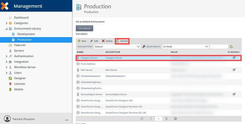 Follow the steps below to refresh a Environment field. This is used to retrieve the latest value of the field from the server, in case another user had modified the value in since the list was last retrieved.