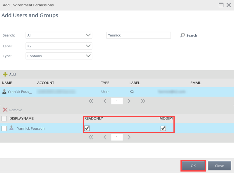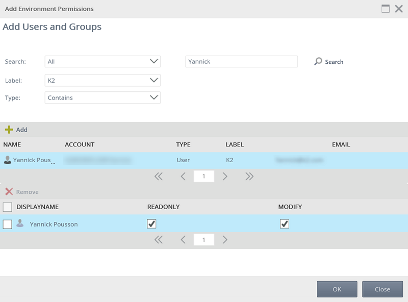 - The Add Environment Permissions page opens. Search for the required user group or role.