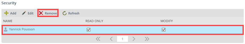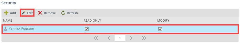Field Description Display Name The display name of the added user or group. Read Only Allows the chosen user or group to only Read the value of the Field. Modify Allows the chosen user or group to Modify the Field.