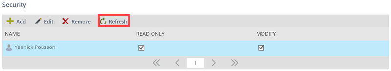 - The Security view is now refreshed, displaying changes made prior to refreshing.