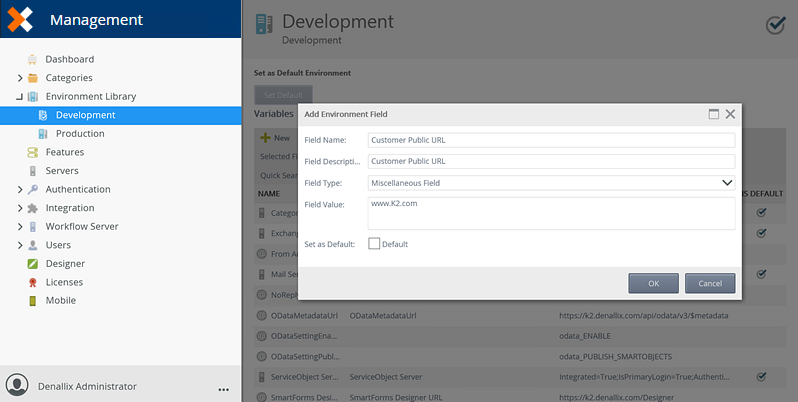 Create a custom environment field in Management. For the purpose of this example, a new miscellaneous field is created in Management, called Customer Public URL, this field links to URL for customer to access.