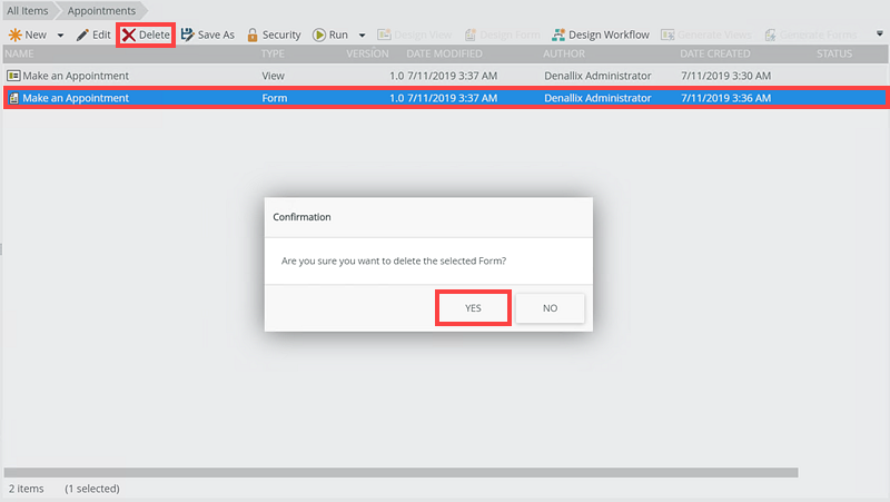 Remove or update all integrated application artifacts such as views, forms and workflows that rely on the Feature Instance from your environment. In this example, you have a Make an Appointment view and form used to create appointments. Delete the view and form since you will be deleting the underlying integration with Exchange Online.
