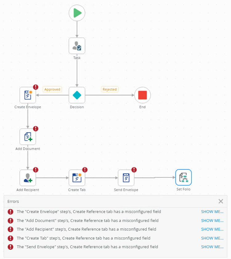 Remove the workflow steps created by the feature instance. DocuSign is the only feature that creates workflow steps in the workflow designer. For the purpose of this example, a DocuSign feature instance is used.