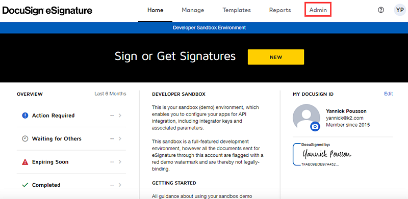 - Log in to your DocuSign Developer Sandbox.