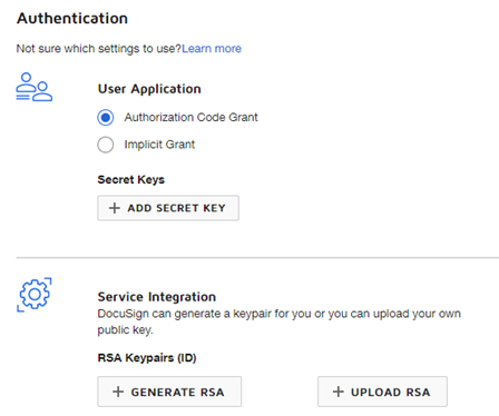 - To setup OAuth you need to have an application with keys setup under DocuSign’s “Apps and Keys” settings page.