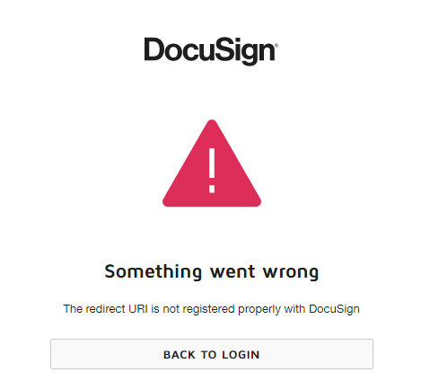 The Redirect URL provided on the DocuSign feature must be added to the apps Redirect URLs.