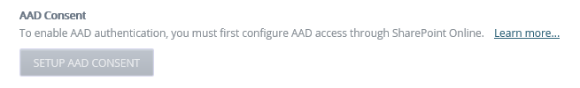 Click on the Setup Azure Active Directory Consent button to enable Azure Active Directory authorization. You only need to do this once.