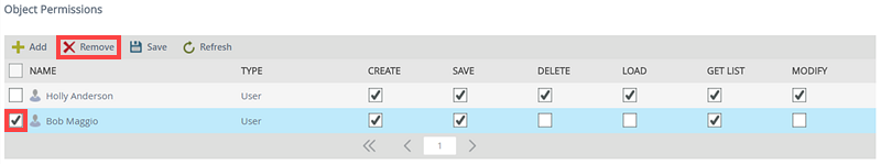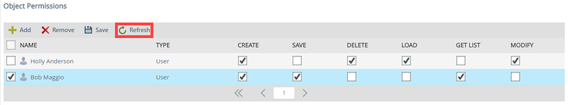 The Refresh button will refresh the list of object permissions once changes have been applied.
