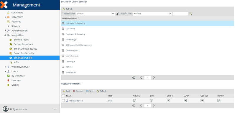 - The authorization rules in this section only apply to SmartObjects backed by the SmartBox data store. SmartObjects based on other systems usually use their own security (e.g. SQL permissions or permissions defined in the underlying data store) to restrict who may do what at runtime.