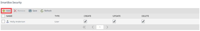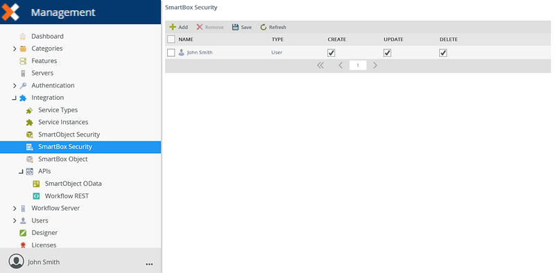 Follow these steps to add design-time permissions that will determine which users/groups can execute particular methods for SmartBox-backed SmartObjects: