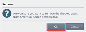 - Click OK on the confirmation message. This will remove the assigned permissions to that user or group as well as remove the user or group from the list