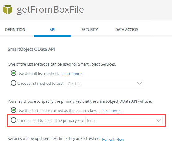 - If you need to assign an identifier to a method for it to work when using the v3 endpoint, some of those methods do not work with the v4 endpoint. The most likely cause of these methods not working is that the primary key that the SmartObject OData API uses is set incorrectly. You can browse to the SmartObject in Management and, on the API page, set a primary key.