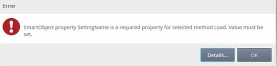 "The SmartObject [SMOName] has [SMOField] as a required parameter. Parameters are not currently supported by SmartObject Services at this time."
