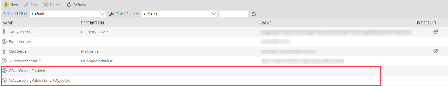 | Selected SmartObjects | This option allows you to select some SmartObjects to make available through the OData API.![]() |