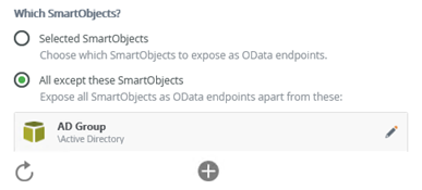 | All except these SmartObjects | This option allows you to select specific SmartObjects to remove from the OData API. Choosing this option exposes all SmartObjects not specified here.![]() |