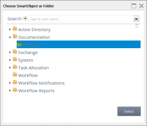 Search if you know the name of the SmartObject or browse to the SmartObject.